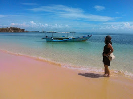 Ternyata, ada waktu waktu tertentu yang bisa membuat kita bisa menikmati keindahan warna pink di pantai tersebut. Katanya sih jam 3 sore, warnanya baru bisa terlihat indah. Sementara gue udah disana jam 11 siang. Tengah hari bentet, main di pinggir pantai cuma modal pake sunblock berulang-ulang. (Untung sunblocknya ngaruh.....dikit)